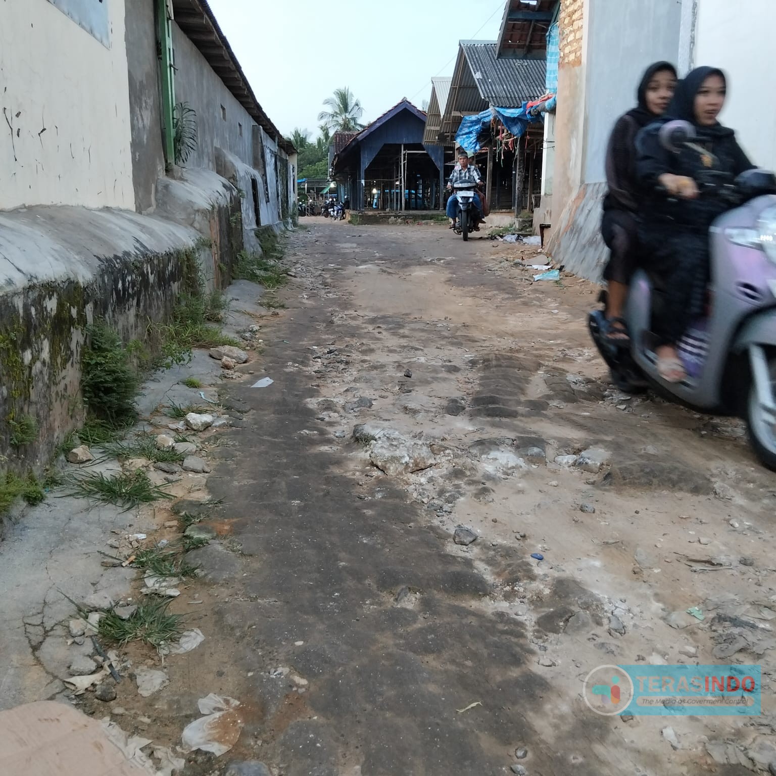 Kerusakan jalan sudah terjadi cukup lama, namun belum ada tanda-tanda perbaikan signifikan dari pemerintah setempat. Aspal terkelupas, lubang besar di sejumlah titik, serta genangan air saat hujan membuat aktivitas jual beli tidak nyaman, bahkan membahayakan pengunjung dan pedagang.