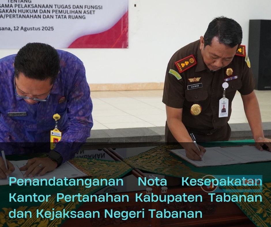 TABANAN | terasindo.co.id – Bertempat di Aula Kejaksaan Negeri Tabanan, dilaksanakan penandatanganan Nota Kesepakatan antara Kantor Pertanahan Kabupaten Tabanan dan Kejaksaan Negeri Tabanan.
