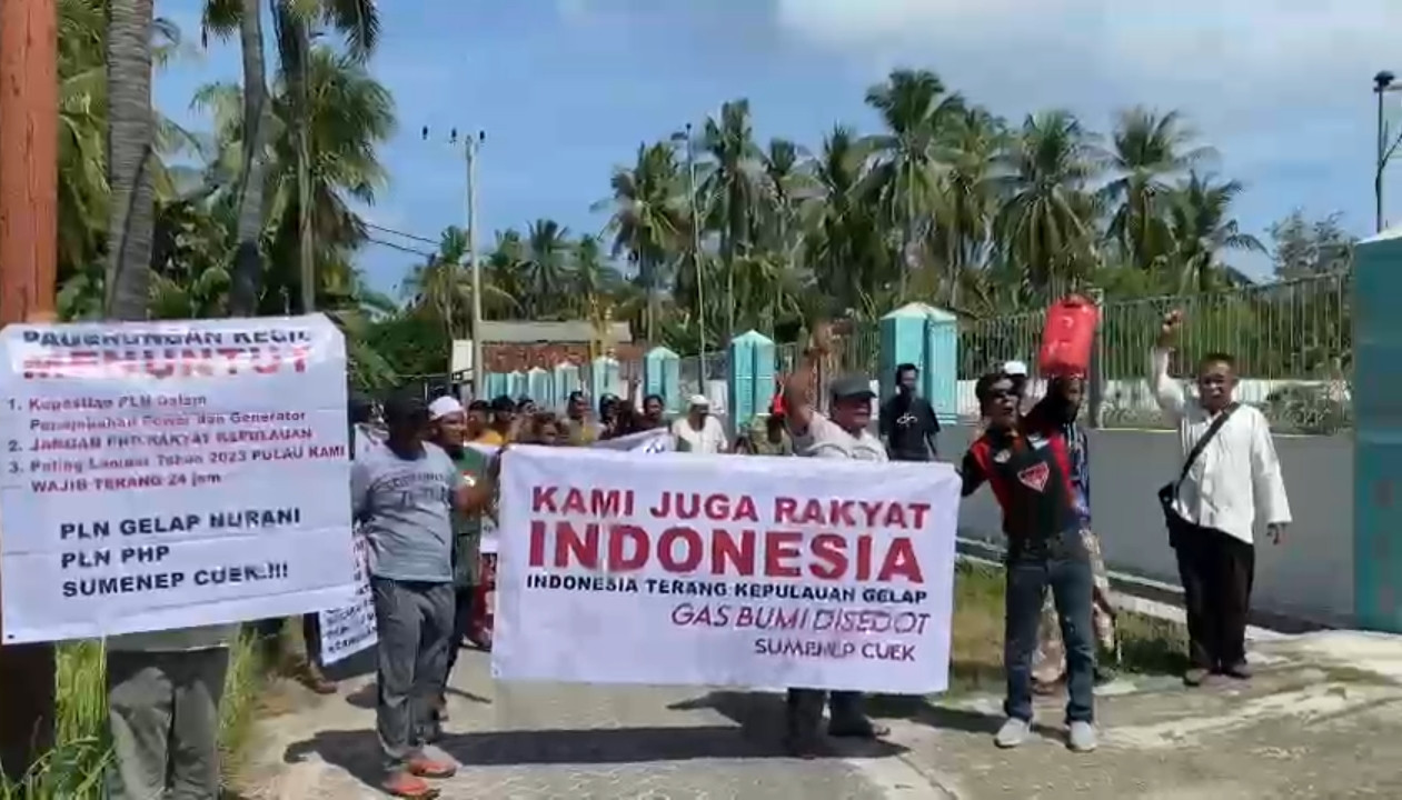 Dalam aksi tersebut, masyarakat membawa poster yang bertuliskan, “Kami Juga Rakyat Indonesia”, “Indonesia Terang Kepulauan Gelap“, “Gas Bumi Disedot“, “Sumenep Cuek”.