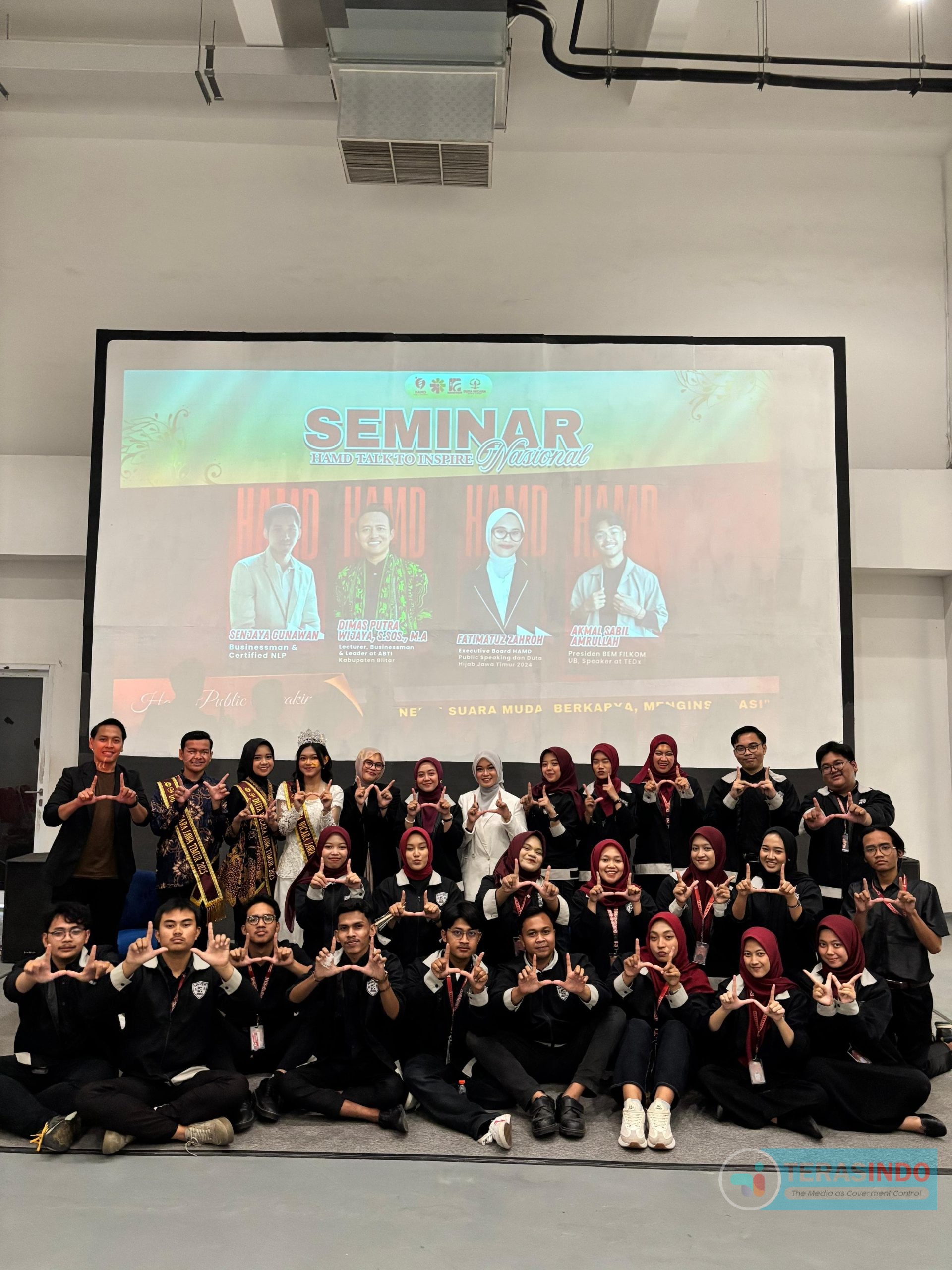 MALANG – Gelora semangat anak muda memenuhi Amphitheater 1 Malang Creative Center (MCC) pada Minggu (07/12/2025). HAMD Public Speaking bekerjasama dengan Duta Wicara Jawa Timur sukses menyelenggarakan Seminar Nasional bertajuk “HAMD Talk To Inspire”.