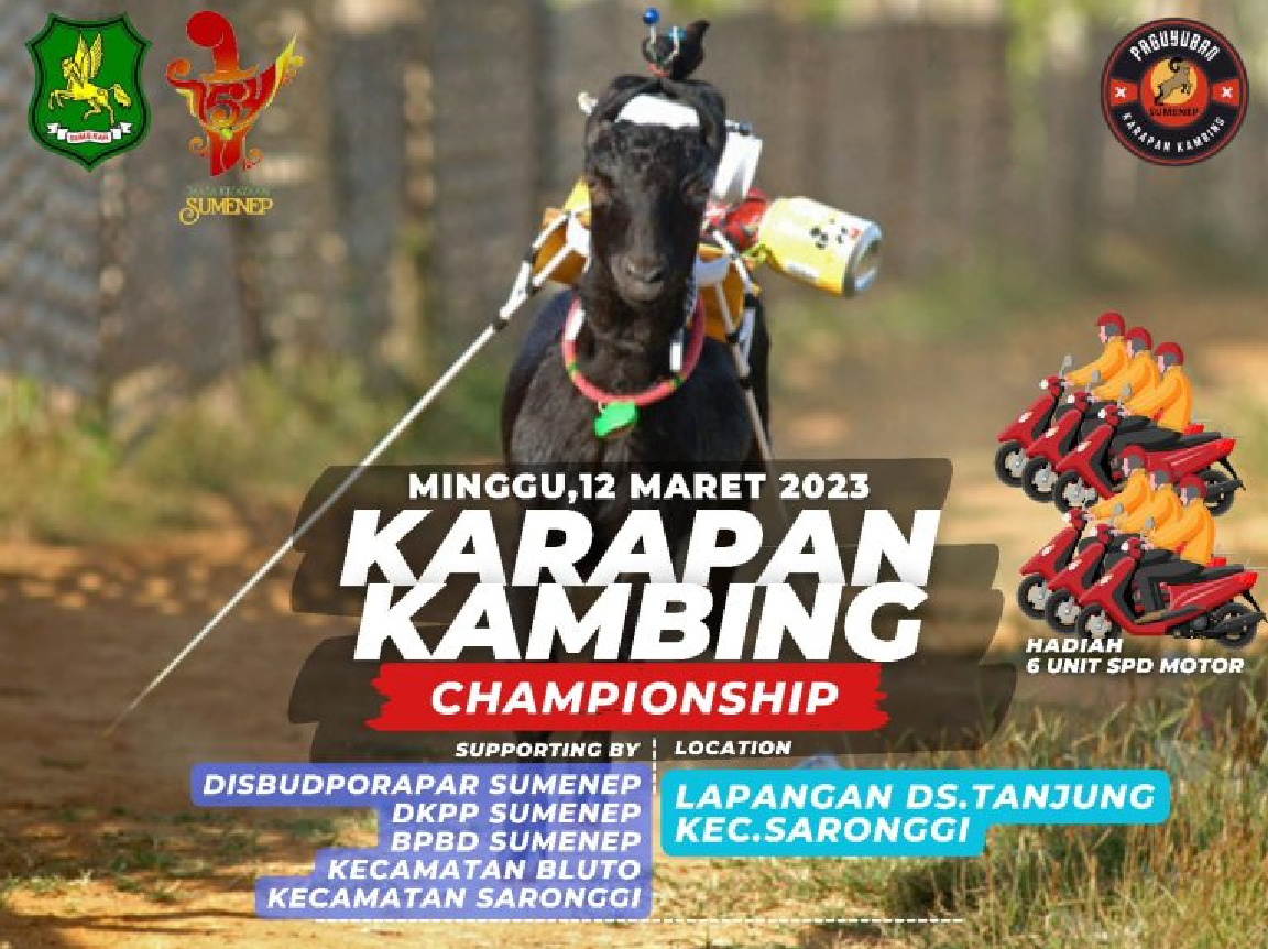 Untuk Itu, Pemerintah Kabupaten (Pemkab) Sumenep, melalui paguyuban karapan Kambing memasukkan program tersebut pada kalender Sumenep tahun 2023