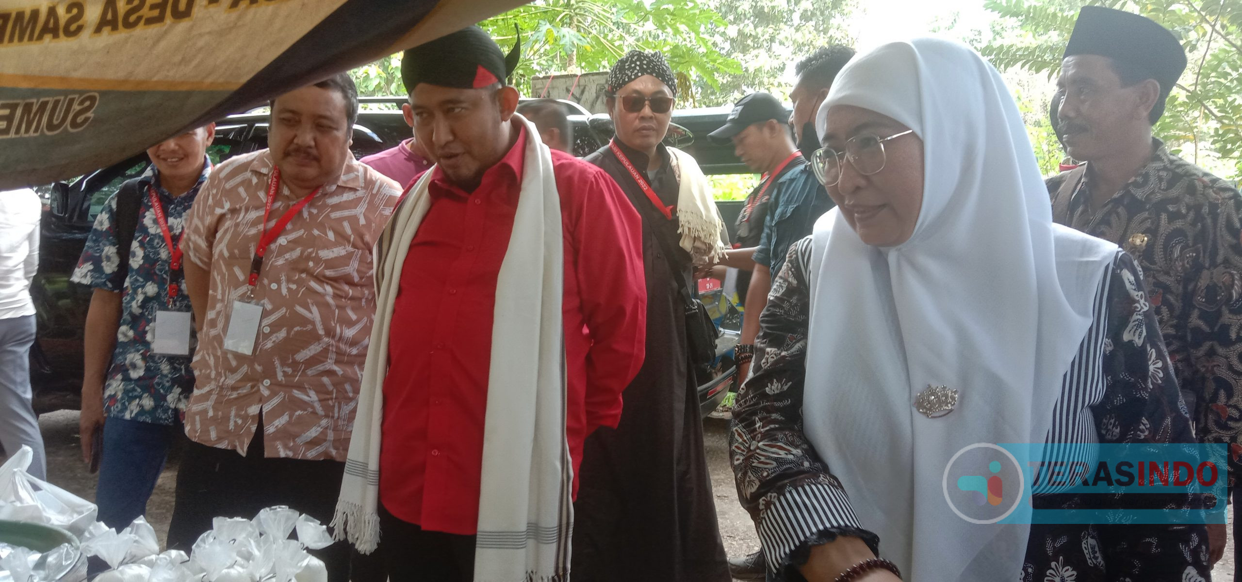 Bupati Fauzi dan wakil Bupati Dewi Khalifah langsung membeli kacang rebus yang dijual, setelah salaman dan bertutur sapa